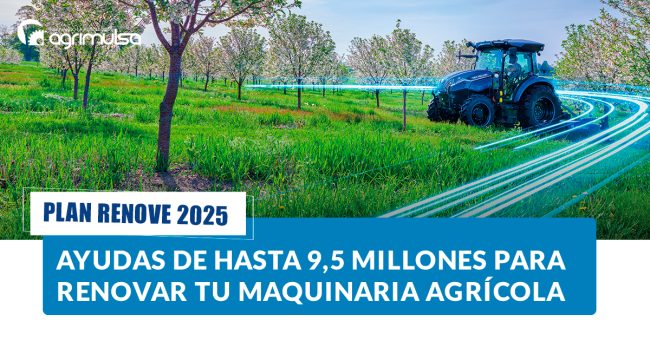 Plan Renove 2025: Ayudas de hasta 9,5 millones para renovar tu maquinaria agrícola El Ministerio de Agricultura, Pesca y Alimentación (MAPA) ha publicado la convocatoria del Plan Renove de Maquinaria Agrícola 2025, con un presupuesto récord de 9,5 millones de euros en ayudas para la adquisición de tractores, sembradoras, equipos de agricultura de precisión y…